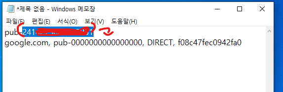 google.com, pub-0000000000000000, DIRECT, f08c47fec0942fa0 이런식으로 쓰세요