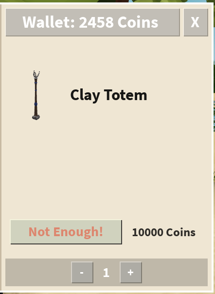두번째는 철 토템이다 가격차이가 꽤 심한편이다(돌은 2원이고 철주괴는 6원이다)