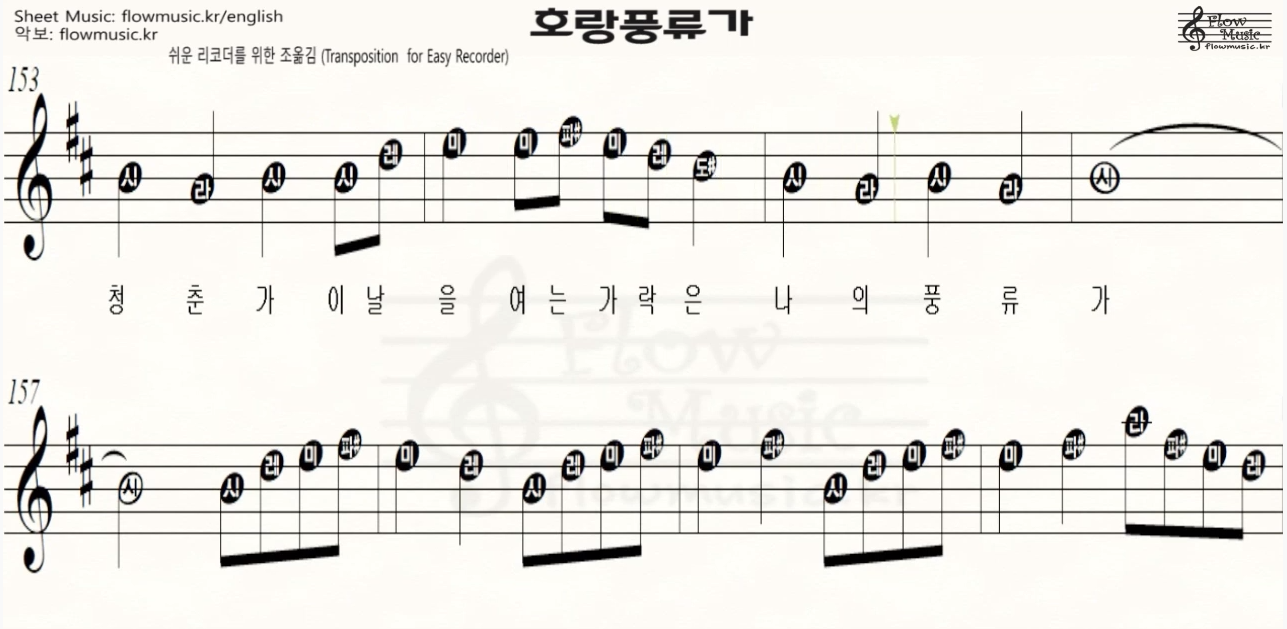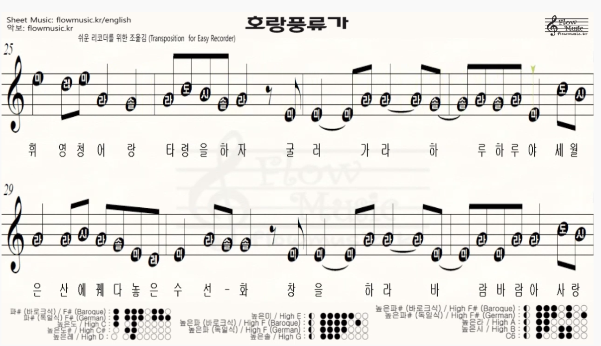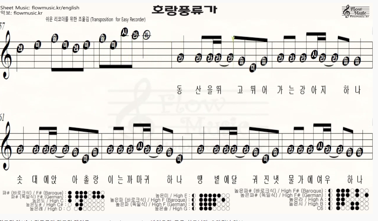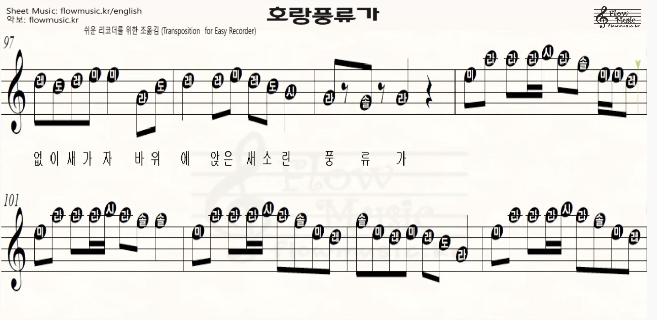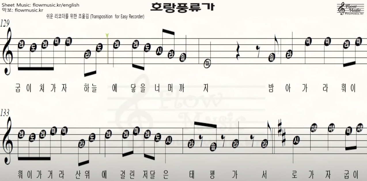 호랑풍류가-[리코더 악보] 호랑풍류가 리코더 계이름 / Recorder Sheet Music / 바이올린, 플룻, 하모니카, 오카리나 악보