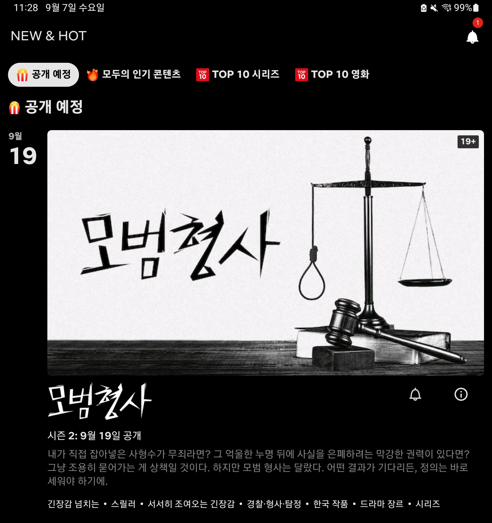 최근에 모범형사1을 정주행하고 끝을 봤는데 밤에 모범형사를 검색하니까 모범형사2가 있길래 보니까 제가 모범형사를 볼때쯤부터 모범형사2가 하고있더라고요. 그래서 어찌저찌 모범형사를 보는데 아는게 없어서 봐도 이해는 안가가지고 계속 속으로 넷플릭스에 모범형사2가 나왔으면 좋겠다고 생각했는데 9월19일에 공개를한다니까 한번 기다려봐야겠습니다. 네이버블로그에서 모범형사2는 넷플릭스에 나올 예정이 없다와 나오지않을 예정으로라고 소식을 들었는데 아마도 그때하고 지금하고 다르기도하고 인기가 또 엄청나니까 개봉하는게 아닐까합니다. 모범형사가 뭔지 모르는 분들을 위해 알려주자면 이대철이라는 사람이 살인을 했다면서 사형수로 보내졌었는데 당시 담당형사는 보고서만보고 검토도 안하고 체포를 했는데 이대철사건이 수면위로 드러나면서 재검토결과 이상하게 결과가 나온걸알았고, 당시 이대철은 무죄를 언급했지만 아무도 그에 관해서 믿지않았던 일을 기억하며 이야기가 시작됩니다. 스튜디오드래곤에서 만든 작품인데 저는 스튜디오드래곤에서 만들었던 본대로말하라도 되게 재밌게봐서 모범형사도 되게 재밌게봤던거 같습니다. 근데 제가 앞줄거리를 설명한건 기억의 일부라서 유튜브에있는 리뷰라던가 짤같은거 보시면 이해가 될겁니다. 물론 이해하고 완결은 직접 정주행하면서 보는거지만 되게재밌습니다.